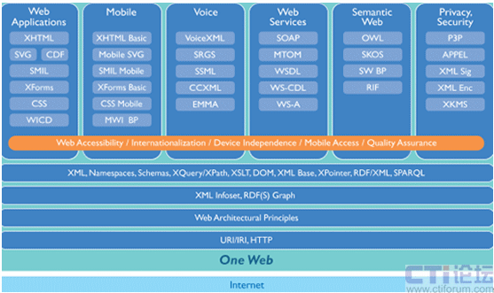 W3C正致力把萬維網(wǎng)從最初的設(shè)計(基本的HTML、URIs和HTTP)轉(zhuǎn)變?yōu)槲磥硭璧哪J健3C的技術(shù)將幫助未來萬維網(wǎng)成為信息世界中有高穩(wěn)定性、可提升和強(qiáng)適應(yīng)性的基礎(chǔ)框架。