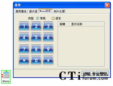 2、菜單(Menu)組件:是IVR的語(yǔ)音菜單組件,不同的語(yǔ)音菜單對(duì)應(yīng)支持不同的業(yè)務(wù)功能。