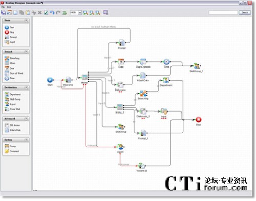 透過(guò)此組件, 使用者可以定制符合企業(yè)需求的 IVR 語(yǔ)音菜單, 設(shè)計(jì)IVR流程,其中包含基本組件、路由組件、目的組件、進(jìn)階組件;提供組織流程、交互語(yǔ)音、以及設(shè)定路由等相關(guān)功能.