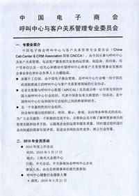 中國(guó)電子商會(huì)呼叫中心與客戶(hù)關(guān)系管理專(zhuān)業(yè)委員會(huì)(China Call-Center & CRM Association簡(jiǎn)稱(chēng)CNCCA),由全國(guó)從事與呼叫中心及客戶(hù)關(guān)系管理,電話(huà)客戶(hù)服務(wù)相關(guān)業(yè)務(wù)的運(yùn)營(yíng)商、制造商、供應(yīng)商、用戶(hù)等單位以及一切關(guān)心和推動(dòng)中國(guó)呼叫中心和客戶(hù)關(guān)系管理事業(yè)發(fā)展的企事業(yè)單位和社會(huì)各界人士自愿組成。