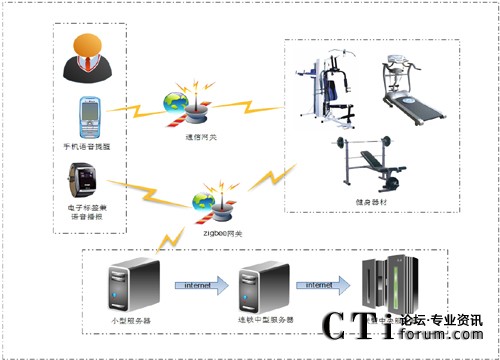 基于物聯(lián)網(wǎng)的綜合信息管理健身系統(tǒng),以下簡稱物聯(lián)網(wǎng)健身系統(tǒng)----IOT Fitness system(IOTFS),本系統(tǒng)是將物聯(lián)網(wǎng)技術(shù)(ZIGBEE、GPRS等傳輸方式)以及語音合成技術(shù)(TTS)的應(yīng)用集成于一體。技術(shù)方案主要利用無線通訊技術(shù)、射頻技術(shù)、電子技術(shù)、計算機(jī)技術(shù)、信息網(wǎng)絡(luò)技術(shù)、傳感技術(shù)等高科技術(shù)的設(shè)備和軟件所組成,以構(gòu)建完善的客戶健身服務(wù)系統(tǒng)和健身房運(yùn)營系統(tǒng)相結(jié)合的統(tǒng)一的信息管理健身系統(tǒng)。