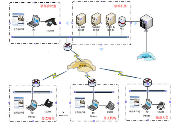 在方案的推進(jìn)過(guò)程中,我們?cè)诟鞔髸?huì)議室部署了CX3000、在桌面分別部署了CX600與IP331。通過(guò)這些終端的自身的優(yōu)勢(shì)及與系統(tǒng)的配合,實(shí)現(xiàn)了完整的電話體驗(yàn)、PSTN無(wú)縫結(jié)合、LYNC完整的企業(yè)級(jí)語(yǔ)音功能、 高清晰語(yǔ)音質(zhì)量 、專業(yè)的語(yǔ)音會(huì)議等用戶需求,F(xiàn)在此方案在鳳凰網(wǎng)的會(huì)議室及桌面的應(yīng)用效果良好,場(chǎng)景應(yīng)用圖如下: