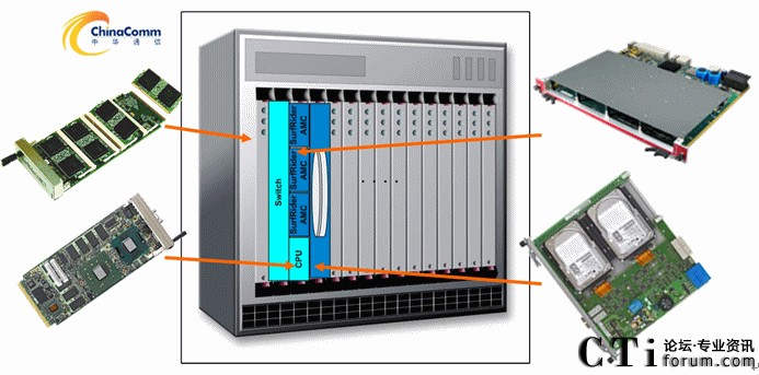 ATCA的背板: ATCA的背板采用雙星型結構,背板的網絡吞吐量是20G,如果業(yè)務需要更高的媒體流量,背板可以改用全網狀結構,設計流量達到40T.