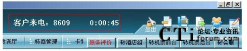 實時顯示呼叫時長和客戶來電號碼,并且顯示了常用的轉接業(yè)務組和軟電話可操作模塊。