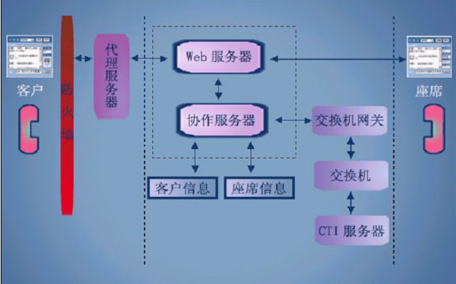 給基于交換機(jī)的呼叫中心,配備Web協(xié)作服務(wù)器和客戶端、座席端軟件包,使得利用PC上網(wǎng)的客戶可以通過因特網(wǎng)呼叫交換機(jī)中的組,使得應(yīng)答的座席,可以和客戶進(jìn)行實(shí)時(shí)文字交談、護(hù)航瀏覽、表單共享和共享白板。