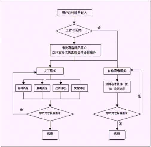 客戶也可以選擇自動語音服務方式,根據系統(tǒng)的語音提示輸入按鍵,選擇類別,將自己所需要的服務要求以及自己的聯(lián)系方式信息以留言錄音的方式保存在系統(tǒng)中。系統(tǒng)同時還支持自動傳真方式,客戶可以通過傳真機進入本系統(tǒng),通過按鍵選擇傳真方式,將所需要的服務要求等的文本內容傳真給系統(tǒng),系統(tǒng)自動接受并存入數(shù)據庫。