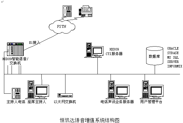 為滿足社會對新一代信息服務(wù)系統(tǒng)的需求,恒訊達公司充分利用多年來專業(yè)致力于運營商智能業(yè)務(wù)系統(tǒng)軟硬件開發(fā)的豐富經(jīng)驗,在研究了國內(nèi)外各種運營商綜合信息服務(wù)系統(tǒng)的基礎(chǔ)上,集中優(yōu)勢開發(fā)力量,充分利用國際先進的可編程交換技術(shù)、數(shù)字和通訊技術(shù)、數(shù)據(jù)庫技術(shù)、計算機網(wǎng)絡(luò)互聯(lián)技術(shù);同時結(jié)合智能網(wǎng)的優(yōu)點和軟交換的先進設(shè)計理念,如模塊化設(shè)計、平臺與業(yè)務(wù)相分離,業(yè)務(wù)與呼叫控制相分離思想;成功推出了功能強大的恒訊達語音增值系統(tǒng)。
