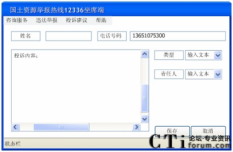 建立12336國土資源舉報熱線是為了更好的為本市的人民群眾提供服務(wù)。按故土上級部門的規(guī)劃,應(yīng)提供以下功能: