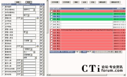 查詢:在要查詢的字段上打勾,輸入要查詢字段的信息及各條件間關(guān)系,點(diǎn)擊“查詢”按鈕,則在屏幕右側(cè)顯示相應(yīng)的查詢結(jié)果,可以對(duì)這些查詢結(jié)果進(jìn)行維護(hù),查詢條件可自由定制。