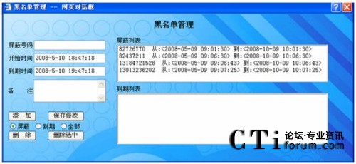 可以將多次惡意騷擾、誤撥的電話,加入到黑名單中,可設(shè)定鎖定時(shí)限,并可查詢管理屏蔽列表和過(guò)期列表。