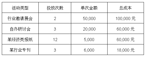 從前面的分析中,我們曾經(jīng)談到過:市場的核心是用最低的成本,幫助企業(yè)把目標(biāo)客戶推動成為機(jī)會客戶。那么,同樣成本推動為有效機(jī)會客戶數(shù)量的多少,則是評價市場方案的有效模型。當(dāng)然,針對個人消費(fèi)市場,似乎可以用更加簡單的投入產(chǎn)出比進(jìn)行分析,一種類型的市場投放運(yùn)作,在一定時間內(nèi)帶來的業(yè)績收益與成本的比較,可以方便地了解到不同類型市場投放的效益對比;而對于大部分需要有銷售過程的機(jī)構(gòu)消費(fèi)客戶,我們可以參考以下我們對劉總公司拿出的模型示例: