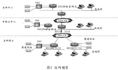 博達通信金融行業(yè)VoIP解決方案的組網(wǎng)模型是一個具有三級分支機構的樹形網(wǎng)絡,網(wǎng)絡結構簡單如圖2所示。