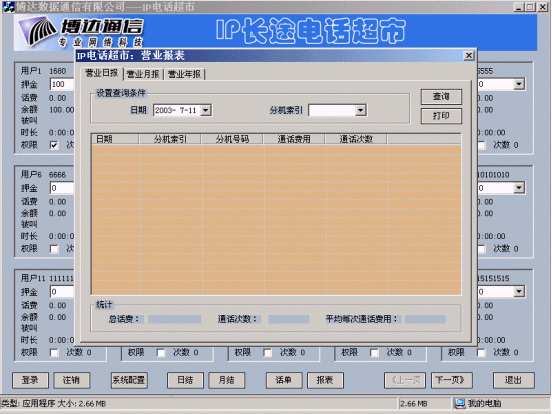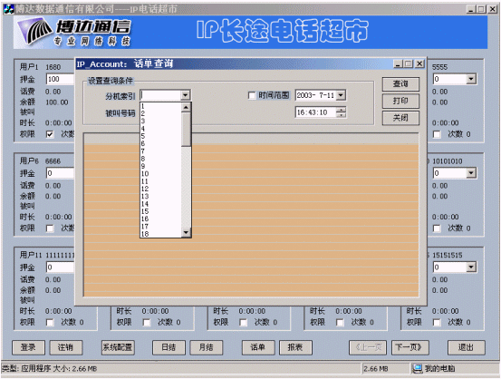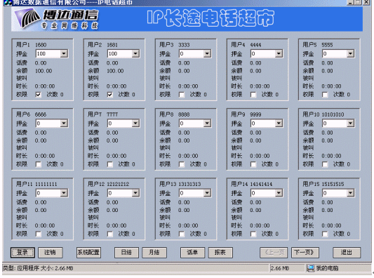 博達(dá)公司在IP電話認(rèn)證的基礎(chǔ)上開(kāi)發(fā)的IP電話計(jì)費(fèi)計(jì)費(fèi)系統(tǒng),實(shí)現(xiàn)了用戶管理、卡用戶批量生成、費(fèi)率設(shè)置、折扣設(shè)置、話單查詢、帳務(wù)查詢、管理統(tǒng)計(jì)、運(yùn)營(yíng)分析等功能,為電信運(yùn)營(yíng)商的運(yùn)營(yíng)和企業(yè)用戶對(duì)IP電話的內(nèi)部管理和服務(wù)提供了有利條件。