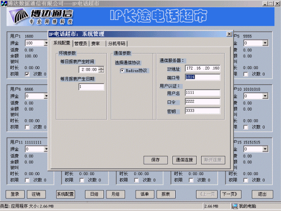 SuperB語(yǔ)音計(jì)費(fèi)管理系統(tǒng)IP超市版 專用于基于VoIP技術(shù)IP超市的語(yǔ)音計(jì)費(fèi)關(guān)鍵軟件(最大可管理10000個(gè)語(yǔ)音終端、網(wǎng)關(guān),內(nèi)置博達(dá)Radius Server)