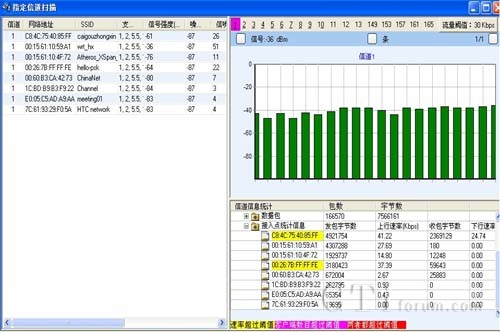 支持設(shè)備被動狀態(tài)下掃描802.11a/b/g/n所有信道,也可選擇信道進行掃描。統(tǒng)計匯總AP、STA、AdHoc等設(shè)備的數(shù)量,統(tǒng)計網(wǎng)絡中SSID網(wǎng)絡數(shù)量,能提供信道的信號強度、噪聲、信噪比、干擾參數(shù)指標等信息。