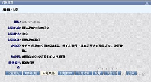 在后臺(tái)能夠?qū)?wèn)卷進(jìn)行添加或刪除,對(duì)問(wèn)卷的設(shè)計(jì)、表現(xiàn)形式、問(wèn)題類型等進(jìn)行編輯修改。