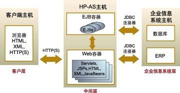 Transactions)和無(wú)線(xiàn)應(yīng)用中間件(Total-e-Mobile)等等。因此,下面主要介紹HP-AS。具體來(lái)說(shuō),HP-AS是基于Java的中間件服務(wù)器,包含了Sun公司創(chuàng)造的J2EE技術(shù)、HP公司的中間件服務(wù)和許多業(yè)界領(lǐng)先的技術(shù)。HP-AS為創(chuàng)建、測(cè)試和運(yùn)行分布式多層應(yīng)用提供了擴(kuò)展性極強(qiáng)的基礎(chǔ)架構(gòu)。像HP-AS這樣的中間件產(chǎn)品,已經(jīng)成為分布式應(yīng)用的首選平臺(tái)。因?yàn)樗鼈兲峁┝酥行缘沫h(huán)境,使得開(kāi)發(fā)者在開(kāi)發(fā)應(yīng)用以及與原有的系統(tǒng)集成的時(shí)候,可以具有最大的靈活性。