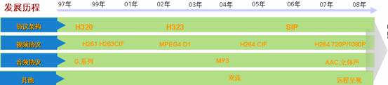 多媒體會議主要提供語音、視頻、數(shù)據(jù)的融合會議解決方案。傳統(tǒng)的多媒體會議在2001年前主要是專線(E1/ISDN)H.320的視頻會議系統(tǒng)。隨著寬帶(LAN/ADSL)的發(fā)展,2002年至2007年主要是H.323的視頻會議系統(tǒng),同時兼容H.320的專線視頻會議系統(tǒng)。2007年前音頻的主要是8k采樣的G.7xx協(xié)議,2007年后寬頻語音AAC-LD已經(jīng)普遍使用。視頻2007年前主要是4CIF格式以下的標(biāo)清系統(tǒng),2007年后H264 720P/1080P的高清得到了廣泛的運(yùn)用。