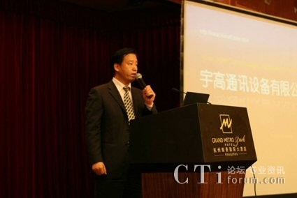 圖:宇高通訊設備有限公司中國區(qū)業(yè)務拓展總監(jiān)李濤闡述與華為的共贏合作案例以及宇高的產(chǎn)品和解決方案