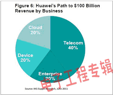 為了實現(xiàn)下一個成長目標,華為將專注于企業(yè)、設(shè)備和云計算等領(lǐng)域中的新機會。到2020年,上述每個領(lǐng)域都將占該公司營業(yè)收入的20%,合計占60%。其余40%營業(yè)收入將來自該公司的傳統(tǒng)電信設(shè)備業(yè)務(wù)。