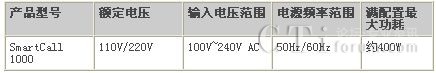 SmartCall 1000 電源和功耗: