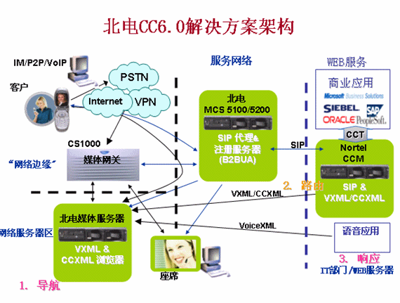 由于北電應(yīng)用中心CC6.0完全基于SIP協(xié)議,支持CCXML與VXML的應(yīng)用,因此,使用北電應(yīng)用中心CC6.0可為客戶提供新型應(yīng)用,如彩鈴、自然語(yǔ)言識(shí)別、基于WEB信息的自助語(yǔ)音服務(wù)等。