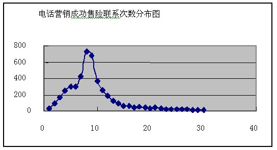 保險電話營銷成功分布概率圖如下,其中:橫坐標為撥打電話的次數(shù),縱坐標代表最終成交的保單數(shù)量。