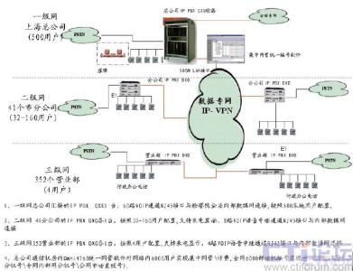 多個(gè)用戶,覆蓋1 個(gè)總公司、41 個(gè)分公司和352 個(gè)營業(yè)部。在設(shè)計(jì)組網(wǎng)方案時(shí),阿爾卡特朗訊根據(jù)用戶的需求和實(shí)際情況,并充分考慮現(xiàn)有的數(shù)據(jù)網(wǎng)絡(luò)資源,提出采用星狀網(wǎng)絡(luò)組網(wǎng)結(jié)構(gòu)建設(shè)PBX