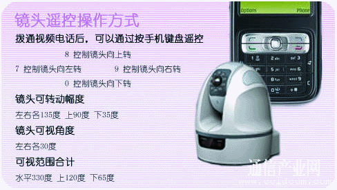 前端攝像頭可以上下左右靈活轉(zhuǎn)動(dòng),隨意安放在家中、商鋪中的合適位置。用戶(hù)的手機(jī)無(wú)需安裝客戶(hù)端軟件,即可通過(guò)視頻電話(huà)直接呼叫前端攝像頭,然后通過(guò)12個(gè)數(shù)字鍵控制前端云臺(tái)轉(zhuǎn)動(dòng)、變焦、錄像、回放等操作。