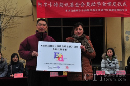 CTI論壇(ctiforum)3月6日消息(記者 浩宇):近日,法國阿爾卡特朗訊基金會(Alcatel-Lucent Foundation)與美國非營利組織世界教育(World Education)在北京市大興區(qū)農(nóng)民工子弟學(xué)!埡W(xué)校聯(lián)合舉辦公益助學(xué)活動,來自阿爾卡特朗訊中國旗艦企業(yè)——上海貝爾及世界教育的志愿者為45名貧困生、72名成績優(yōu)秀學(xué)生、244名成績進步獎獲得者共計361人發(fā)放獎助學(xué)金和獎狀。此次活動是ConnectEd“科技連結(jié)世界”項目協(xié)助流動青少年“透過科技擁抱世界”系列公益活動的重要一站,ConnectEd “科技連結(jié)世界”項目由阿爾卡特朗訊基金會(Alcatel-Lucent Foundation)與世界教育(World Education)共同在全球推動。作為志愿者之一,上海貝爾執(zhí)行副總裁、阿爾卡特朗訊中國區(qū)產(chǎn)品與研發(fā)負責(zé)人莊靖博士參與了此次活動,并為阿爾卡特朗訊ConnectEd項目合作校揭牌。雙方還在北京市昌平區(qū)新源學(xué)校舉行了公益助學(xué)活動,為45名貧困生、39名成績優(yōu)秀學(xué)生、52名成績進步獎獲得者共計136人發(fā)放獎助學(xué)金。