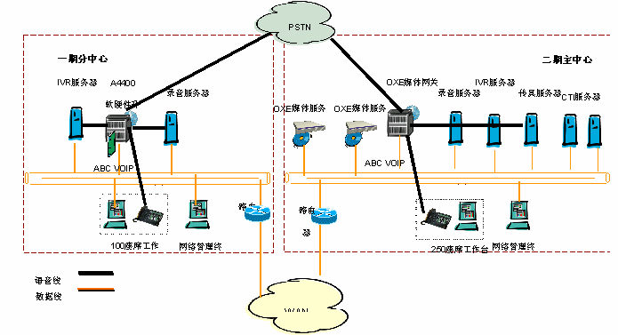 基礎(chǔ)語音系統(tǒng)采用阿爾卡特OmniPCX Enterprise語音通信平臺,它采用分布式的語音體系架構(gòu),完全融合IP技術(shù),并可集成傳統(tǒng)的TDM語音。OmniPCX Enterprise提供開放的標準和靈活的擴展能力,并提供99.999%的高可靠性。讓用戶靈活的配置其座席的地理位置和通信方式,并保證系統(tǒng)運行安全可靠。OmniPCX Enterprise交換機(二期)計劃采用Appliance Server呼叫服務(wù)器雙備份結(jié)構(gòu),提供RSI接口與GENESYS相連,以及并線錄音系統(tǒng)接口。今后,項目還將采用先進的阿爾卡特-My Phone IP WEB軟電話,提高內(nèi)部通信能力,優(yōu)化業(yè)務(wù)流程。