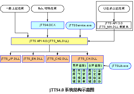 新版本的jTTS_MA.DLL是為了保持向下兼容,它完全繼承原有的jTTS API 3.0的所有函數(shù),不增加也不刪減任何函數(shù)。因此,它也僅能完成以前版本的功能(但可以利用最新的中文引擎,提高聲音質(zhì)量),提供它的目的僅僅在于用戶能夠不改動原有程序繼續(xù)運行,但如果希望使用新的功能,必須使用jTTS_ML.DLL,利用新的API進(jìn)行開發(fā)。