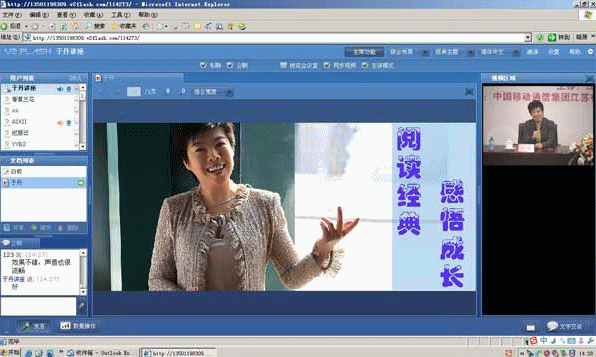 CTI論壇(ctiforum)1月21日消息(記者 張塵):2010年1月14日,江蘇省女性大講堂2010年第一集----于丹“閱讀經典,感悟成長”專題講座在中國移動江蘇綜合廳成功舉行。據悉,《閱讀經典 感悟成長》是“全球通VIP名家講堂”聯手于丹推出的全國大型巡講式講堂,已先后在深圳、上海、蘭州、泉州、武漢、合肥等地進行了講演。截止目前,全球通已成功舉辦“全球通VIP大講堂”25場,參與人數累計達上萬人次,先后邀請到了李肇星、張召忠、紀連海等專家學者擔任主講嘉賓。