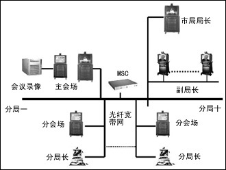 在每個分局和信息中心機房設置分會場,實現網絡視頻會議和遠程技術支持。分會場的會議終端設備選用VCON的會議室型柜式終端MediaConnect