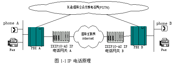 普通電話的基本流程是:用戶在phone A要打長(zhǎng)途電話到phone B,語(yǔ)音從phone A到PBX A,通過(guò)PSTN網(wǎng),經(jīng)PBX B到phone B。而IP電話的基本流程為:用戶在phone A要打長(zhǎng)途電話到phone B,語(yǔ)音經(jīng)PBX A傳到網(wǎng)關(guān)A。在網(wǎng)關(guān)A對(duì)語(yǔ)音進(jìn)行處理,打成可在IP網(wǎng)絡(luò)傳輸?shù)恼Z(yǔ)音包。由IP網(wǎng)絡(luò)將語(yǔ)音包傳給網(wǎng)關(guān)B,網(wǎng)關(guān)B對(duì)語(yǔ)音包進(jìn)行處理,還原為語(yǔ)音,經(jīng)PBX B傳到phone B。IP 電話原理見(jiàn)圖1-1。
