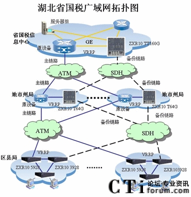 湖北省國稅三級專網(wǎng)已經(jīng)建成,但是存在單點(diǎn)單鏈路隱患,為了保證網(wǎng)絡(luò)可靠運(yùn)行,2006年湖北國稅攜手中興通訊對省國稅系統(tǒng)的網(wǎng)絡(luò)進(jìn)行備份網(wǎng)絡(luò)改造,結(jié)合稅務(wù)系統(tǒng)金稅三期網(wǎng)絡(luò)需求,網(wǎng)絡(luò)改造采用SDH線路來組建高帶寬的廣域網(wǎng)絡(luò),同時與原有的網(wǎng)絡(luò)設(shè)備(包括路由器、交換機(jī))及網(wǎng)絡(luò)接入設(shè)備實(shí)現(xiàn)互連互通,互為備份。
