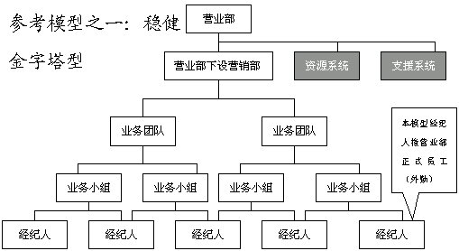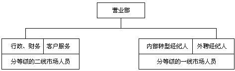 此五種模式建立在營業(yè)部基礎上,在券商總部,建議設立垂直的業(yè)務管理機構,即經(jīng)紀業(yè)務總部實行事業(yè)部制,下設分工專業(yè)的市場營銷部、客戶服務部、經(jīng)紀人訓練部和綜合管理部等。