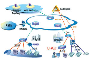 通過該方案,實現(xiàn)了公司所有的電話對外具有市話長號碼(分機號前加上局字冠),與PSTN互通。同時可設置總機號碼,安排坐席作為對外的話務員,可方便外界與該公司的聯(lián)系?倷C號碼對包括市區(qū)和郊縣的整個分公司服務,沒有地域的區(qū)別。
