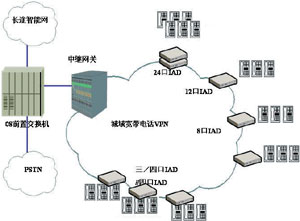 如圖4所示,該公司采用中興ZTE Softswitch系統(tǒng)部署了城域?qū)拵щ娫捪到y(tǒng),在城域網(wǎng)內(nèi)通過VPN組網(wǎng),各辦公地電話機通過多口IAD接入寬帶電話網(wǎng)絡,通過在ZTE
