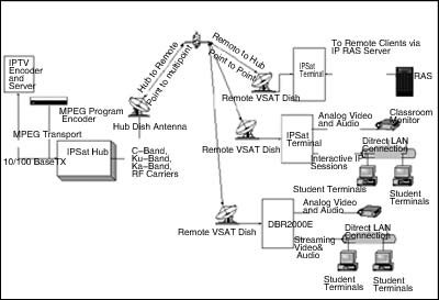 中國衛(wèi)通的“衛(wèi)星寬帶視頻會議系統(tǒng)”是一個典型的IPSat系統(tǒng),由一個發(fā)送高速上行廣播的主站和使用IPSat終端的多個遠端站構(gòu)成。