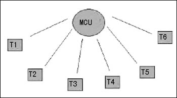 就H.323來講,企業(yè)存在ADSL、電信專線、衛(wèi)星網(wǎng)絡(luò)等多種選擇。H.323基于IP網(wǎng)絡(luò),IP網(wǎng)絡(luò)雖然是總線型的網(wǎng)絡(luò),但從H.323視頻會(huì)議系統(tǒng)組網(wǎng)來說,依舊同H.320視頻會(huì)議系統(tǒng)一樣,是星型網(wǎng)絡(luò),如圖所示,所有的終端數(shù)據(jù)都匯集到MCU處。這樣對(duì)視頻會(huì)議系統(tǒng)組網(wǎng)就提出了要求,如果MCU以下共有6個(gè)終端,每個(gè)中端以B的帶寬開會(huì),那么各個(gè)終端處的帶寬要求為B,MCU處的帶寬要求就為6B。