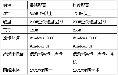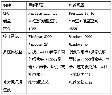 1、配置一臺服務(wù)器安裝WeCO 服務(wù)器軟件,服務(wù)器需要有靜態(tài)IP 地址,并且可以位于防火墻之后。視頻會議服務(wù)器的系統(tǒng)需求如下表所示:
