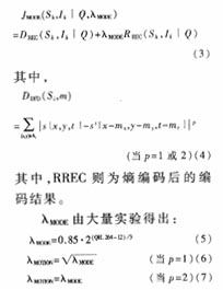 ·選擇編碼參數量化值Q(在編碼模式已自適應選擇時),利用拉格蘭其方法實現(xiàn)R一定條件下,失真D最小,具體說是拉格蘭其代價函數JMODE最小。