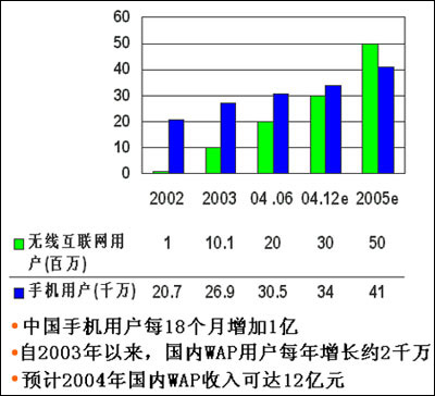 有數(shù)據(jù)顯示,國(guó)內(nèi)WAP用戶自2003年來(lái)以每年2000萬(wàn)的速度遞增,預(yù)計(jì)2005年末將有望達(dá)到5000萬(wàn),接近國(guó)內(nèi)Internet用戶總數(shù)的一半。WAP雖然是一個(gè)充滿了機(jī)會(huì)的市場(chǎng),但國(guó)內(nèi)現(xiàn)有的WAP站點(diǎn)資源很難滿足WAP用戶的需求也是事實(shí)。劉斌認(rèn)為,2005年將是對(duì)WAP非常關(guān)鍵的一年,在這一年里,WAP搜索將有望成為WAP平臺(tái)上的“殺手級(jí)應(yīng)用”,并最終催熟國(guó)內(nèi)各種相關(guān)的WAP應(yīng)用。當(dāng)然,這有一個(gè)前提,那就是中文WAP網(wǎng)絡(luò)資源必須在今年得到極大豐富。