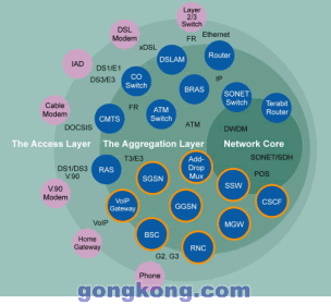 電信應用的范圍如圖2所示,從終端設備到接入層和匯聚層乃至核心網(wǎng),藍色區(qū)域標出的應用可以有效地運用基于開放標準的技術,例如基于ATCA和PICMG2.16標準。