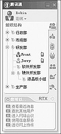 與其他應(yīng)用程序集成是EIM的發(fā)展趨勢,也是企業(yè)現(xiàn)代辦公的一大需求。目前,騰訊通RTX已成功與國內(nèi)著名的金碟、用友、北京慧點等軟件廠商開展合作,使騰訊通RTX的整體功能進(jìn)一步提升,極大地方便了企業(yè)應(yīng)用。比如通過與金碟OA的集成,實現(xiàn)了企業(yè)級實時通信平臺與企業(yè)管理軟件和信息化解決方案的緊密結(jié)合,從而更好地滿足客戶需求。通過與用友ERP集成,降低了企業(yè)通信時間和費(fèi)用,提高了工作效率。