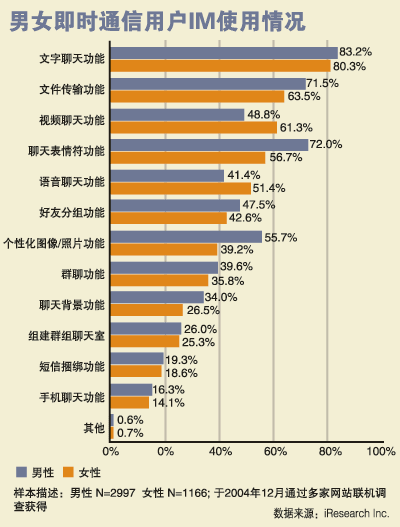 據(jù)IDC的相關(guān)預(yù)測(cè),2007年美國(guó)無線SMS和IM用戶將分別達(dá)到7500萬和6300萬。到2007年年底,SMS和IM的利潤(rùn)都將達(dá)到19億美元。價(jià)廉物美易于操作的IM文字短信方案與業(yè)已普及的SMS互動(dòng)發(fā)展,市場(chǎng)的主要?jiǎng)恿碜杂贗M。而據(jù)《芝加哥論壇報(bào)》表示,到2005年IM軟件使用將超過電子郵件。企業(yè)將用IM代替30%~40%的內(nèi)部電子郵件,而到2007年全球企業(yè)IM用戶將從目前的5200萬增加到3.49億。