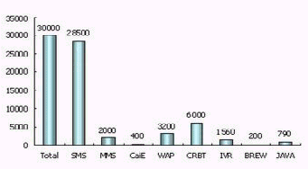 2005年,中國(guó)的移動(dòng)增值業(yè)務(wù)用戶規(guī)?倲(shù)達(dá)到了3億,其中短信用戶伴隨移動(dòng)通信用戶的穩(wěn)定增長(zhǎng)而增長(zhǎng),MMS、CaiE、JAVA、BREW等數(shù)據(jù)業(yè)務(wù)隨著終端的普及以及產(chǎn)品的豐富,增長(zhǎng)很快,以上四類數(shù)據(jù)增值業(yè)務(wù)累計(jì)用戶2005年已超過(guò)2500萬(wàn)。