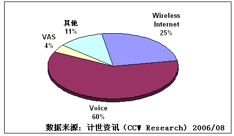從海外的發(fā)展經(jīng)驗(yàn)來(lái)看,韓國(guó)SKT作為成功運(yùn)營(yíng)3G業(yè)務(wù)的電信運(yùn)營(yíng)商,我們?cè)诜治銎涿總(gè)用戶收入ARPU構(gòu)成時(shí)發(fā)現(xiàn),3G所帶來(lái)的數(shù)據(jù)方面的增值收入(VAS,Value Added Service)是非常有限的,僅有4%,不足為運(yùn)營(yíng)商帶來(lái)更大的收益,相比之下,其語(yǔ)音業(yè)務(wù)(Voice)收入占到了總收入60%以上。盡管其純粹的無(wú)線數(shù)據(jù)業(yè)務(wù)(Wireless Internet)在收入結(jié)構(gòu)中的比例,已經(jīng)達(dá)到了25%以上,話音業(yè)務(wù)仍然是用戶的基本通信需求,它作為運(yùn)營(yíng)商主要收入來(lái)源的地位,短時(shí)期內(nèi)不可能被數(shù)據(jù)業(yè)務(wù)和增值業(yè)務(wù)的收入替代。