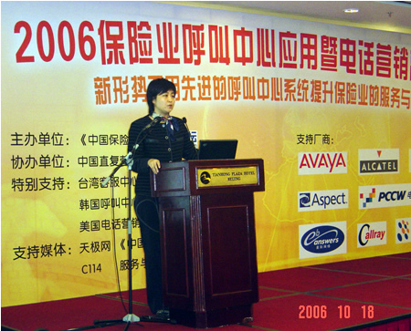 。。2006年10月18日,2006保險(xiǎn)業(yè)呼叫中心應(yīng)用暨電話營(yíng)銷高峰研討會(huì)在北京天鴻科園大酒店隆重召開,以下是K1主題演講實(shí)錄: